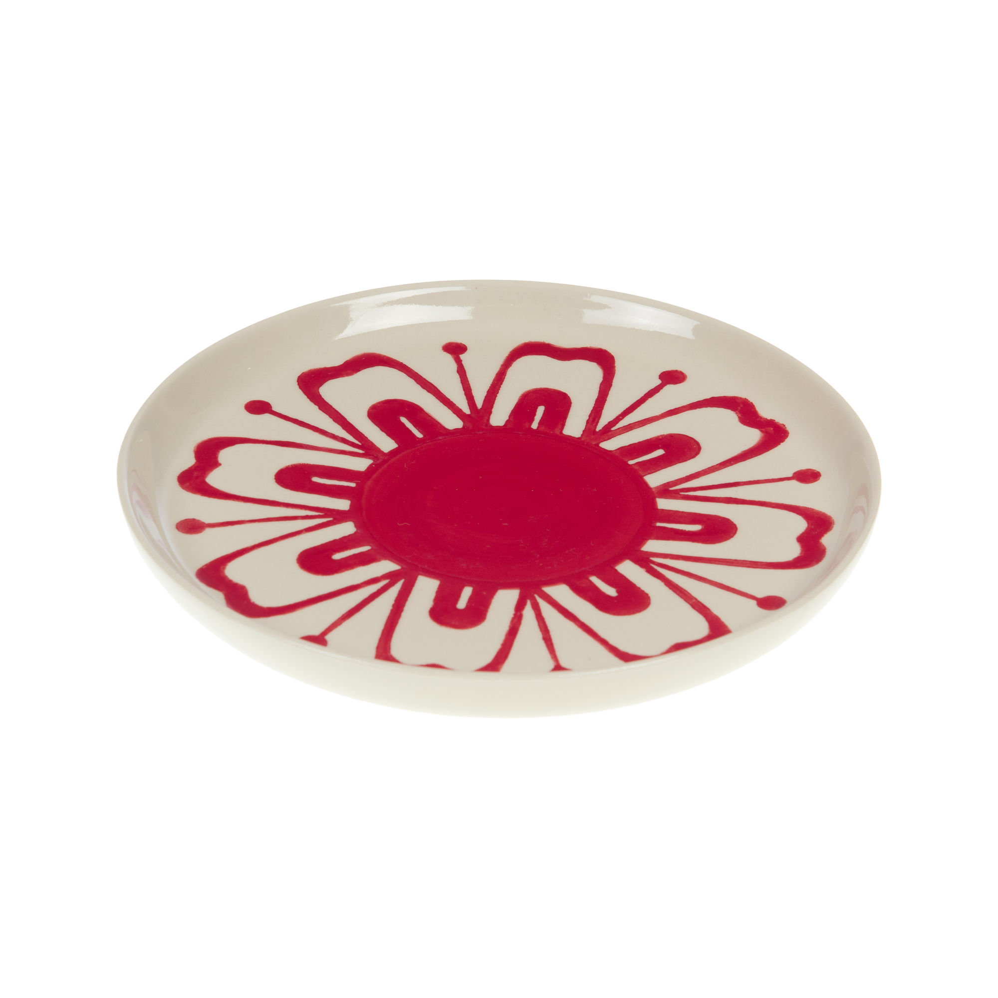 Apportez une note joyeuse à vos desserts avec cette assiette en grès décorée d’un motif floral rouge vif sur fond blanc cassé. Sa taille idéale et sa matière résistante en font un compagnon parfait pour vos moments gourmands au quotidien.