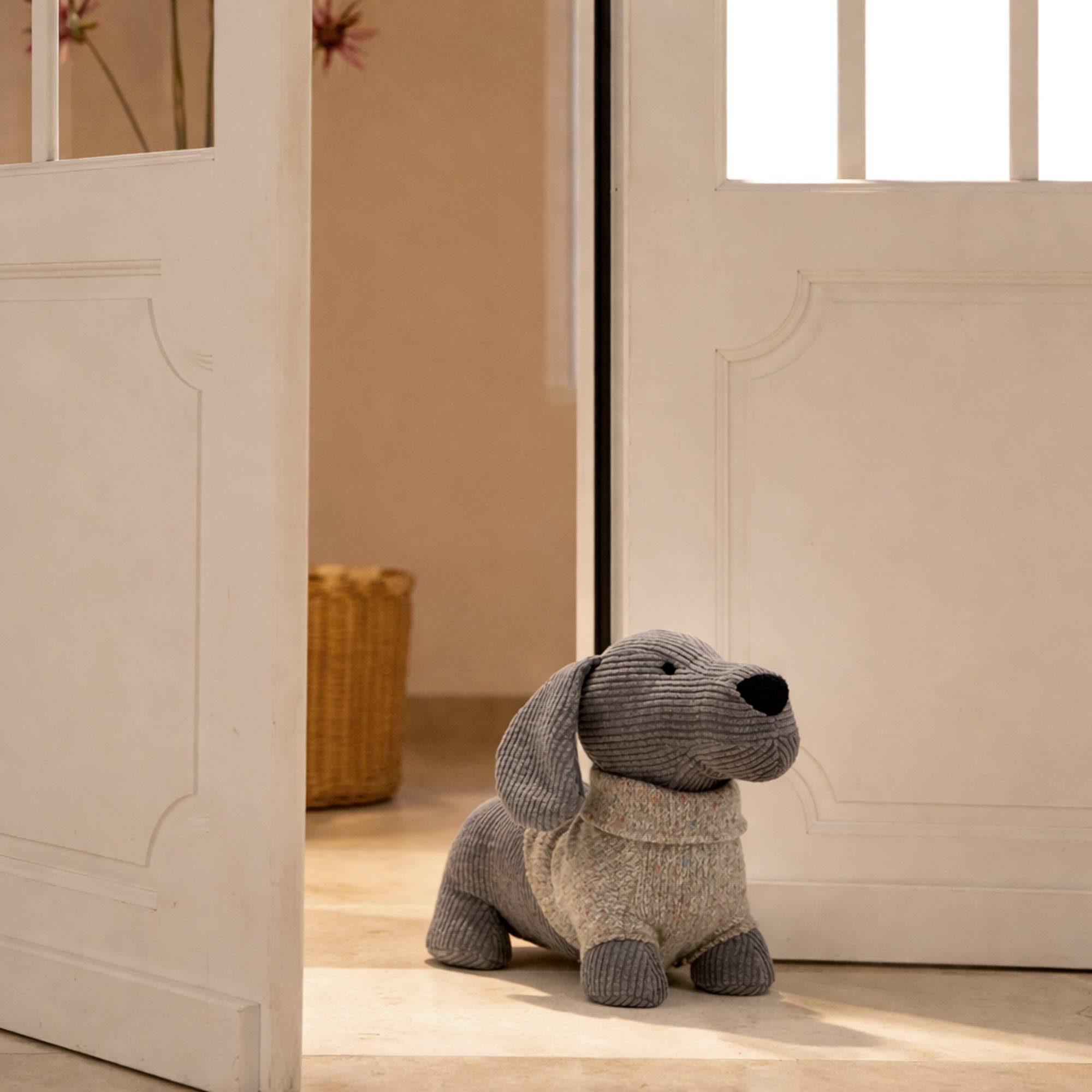 Apportez une touche de charme et de douceur à votre intérieur avec ce cale porte en forme de chien gris. Son tissu côtelé et son pull tricoté lui donnent un aspect chaleureux et convivial. Pratique et décoratif, il maintient vos portes ouvertes tout en ajoutant une note amusante et cosy à votre maison.