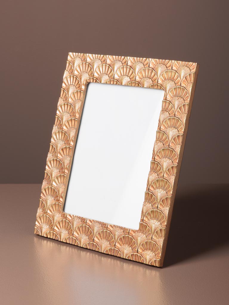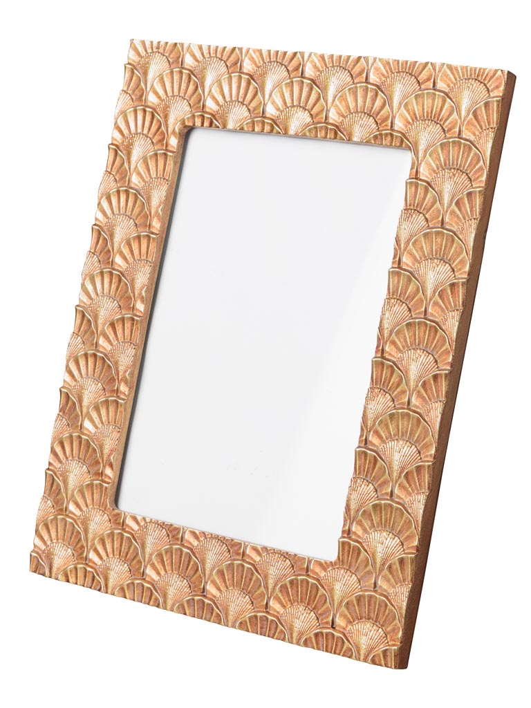Très beau porte photo en résine et verre de couleur doré.
