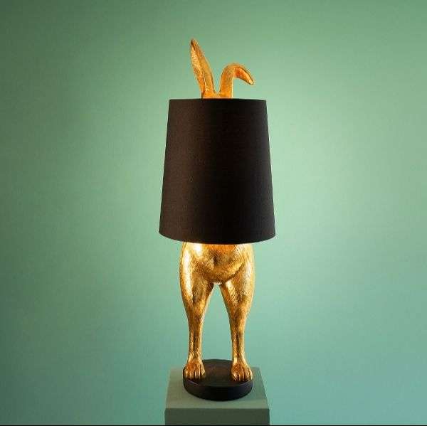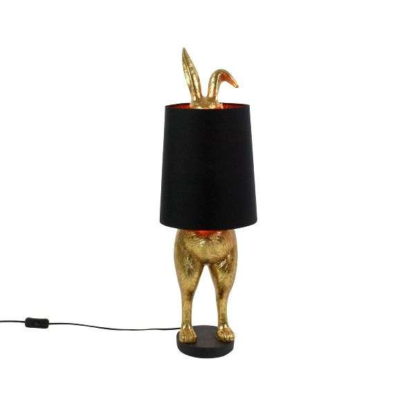 En résine dorée et noire Abat-jour noir en coton H74 cm x 24 cm