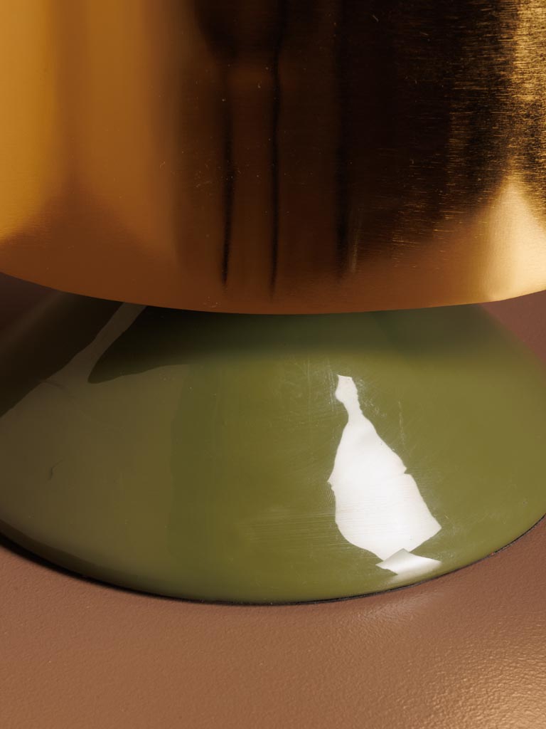 Son contraste entre le vert profond et le doré lumineux en fait une pièce décorative forte, idéale pour un salon, une chambre ou un bureau. Parfaite comme lampe d’appoint, elle combine esthétique moderne et fonctionnalité.