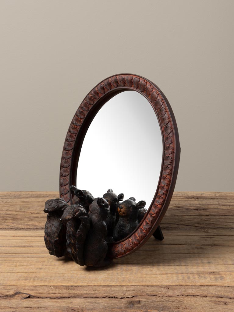 On craque pour ce petit miroir à poser avec ses deux petits écureuils curieux.