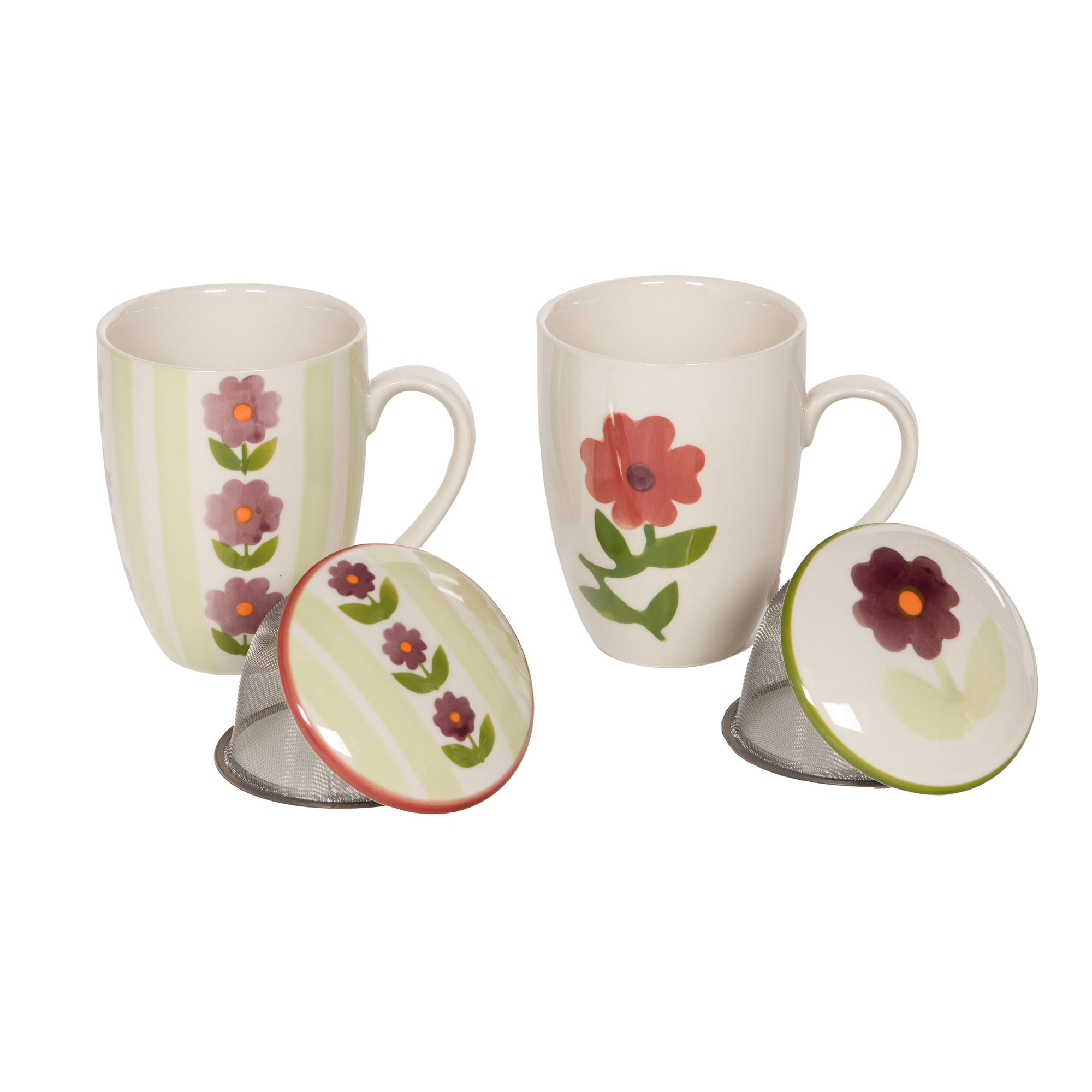 Apportez une note fleurie à vos pauses thé avec le mug filtre Daphné, vendu en assortiment de 2 modèles. En grès émaillé (400 ml), il offre une prise en main confortable et des décors floraux charmants qui égayent votre table. Idéal pour le quotidien ou pour offrir.