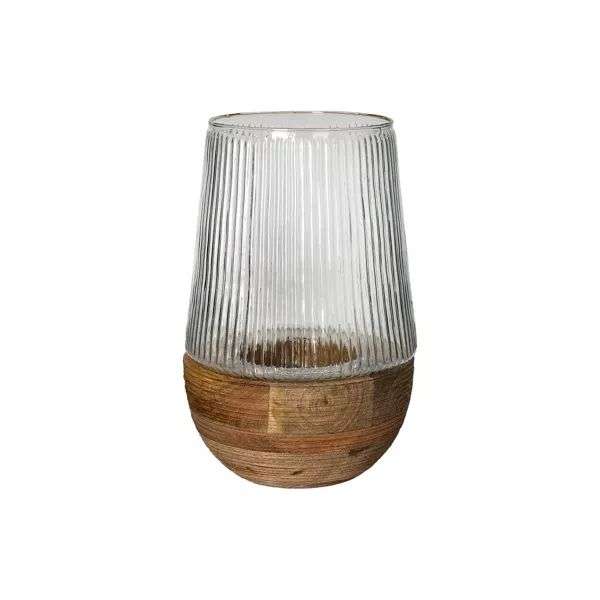 Grand photophore en bois de manguier et en verre