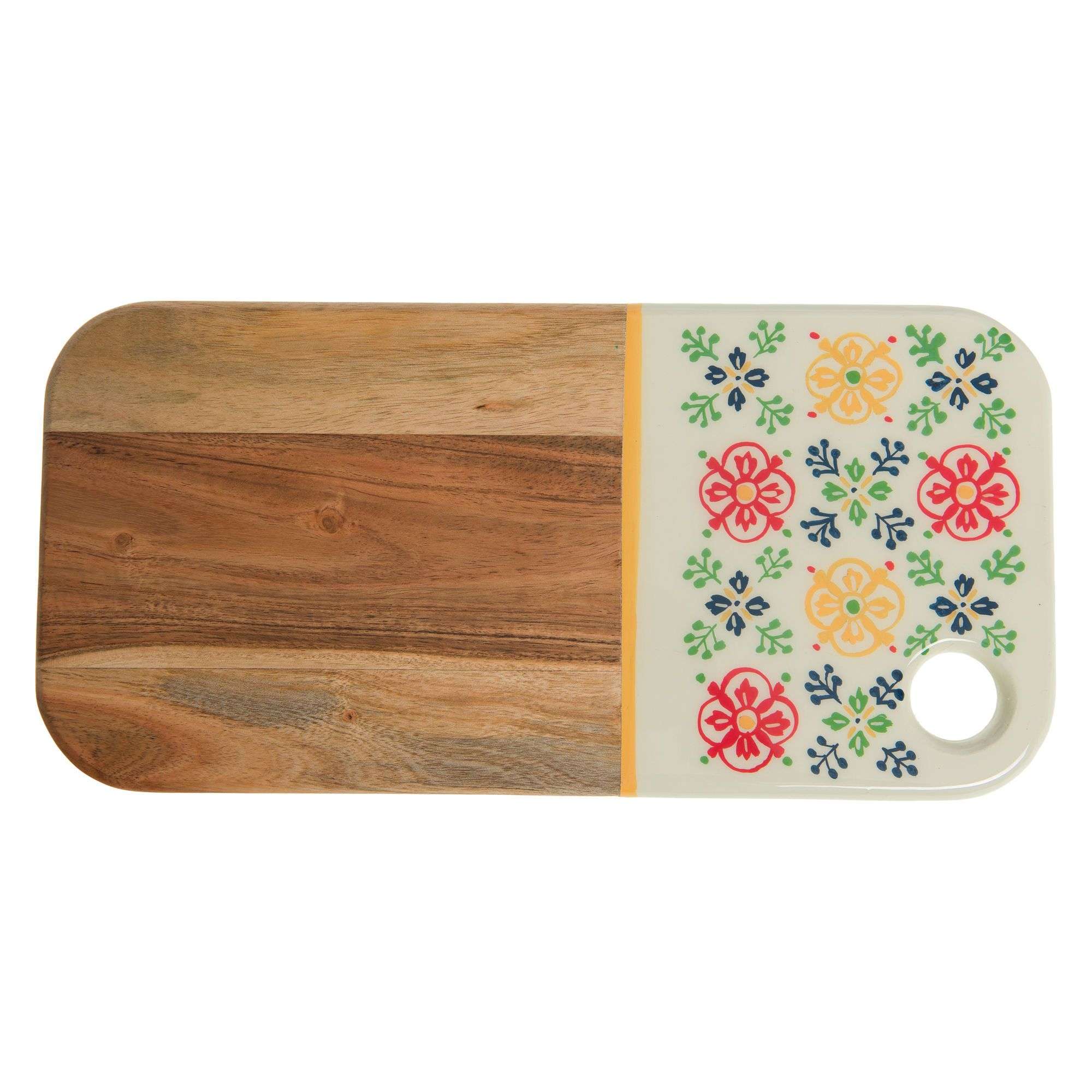 Apportez une touche d’originalité à votre cuisine avec cette planche en acacia décorée. Pratique et esthétique, elle combine la chaleur du bois naturel à un motif floral coloré sur fond blanc, pour égayer vos préparations et vos présentations. Compacte et légère, elle s’adapte à tous les espaces et devient un accessoire déco au quotidien.