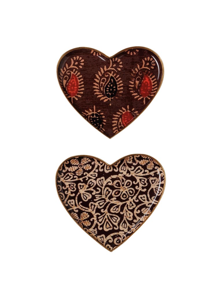 Lot de deux petits plateaux en métal en forme de cœur