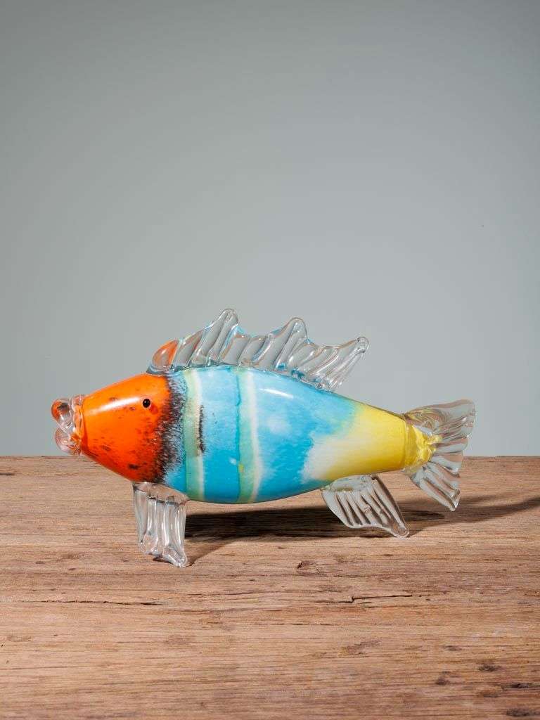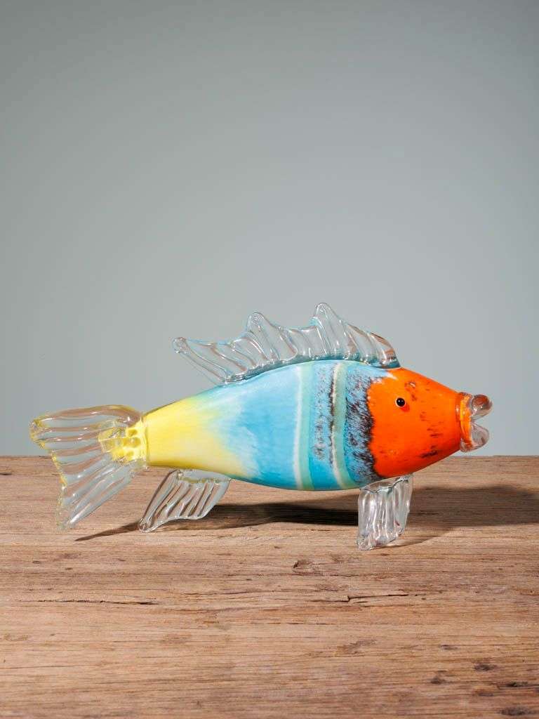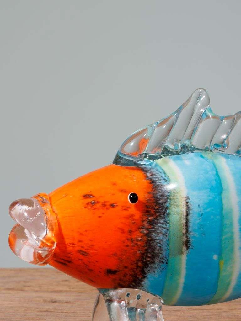 Parfait pour être exposé sur une étagère, une table ou une console, ce poisson en verre se suffit à lui-même comme pièce décorative. Sa finition brillante met en valeur les reflets du verre, créant un objet lumineux et décoratif qui s’intègre harmonieusement dans tous les styles d’intérieur, du plus classique au plus contemporain.