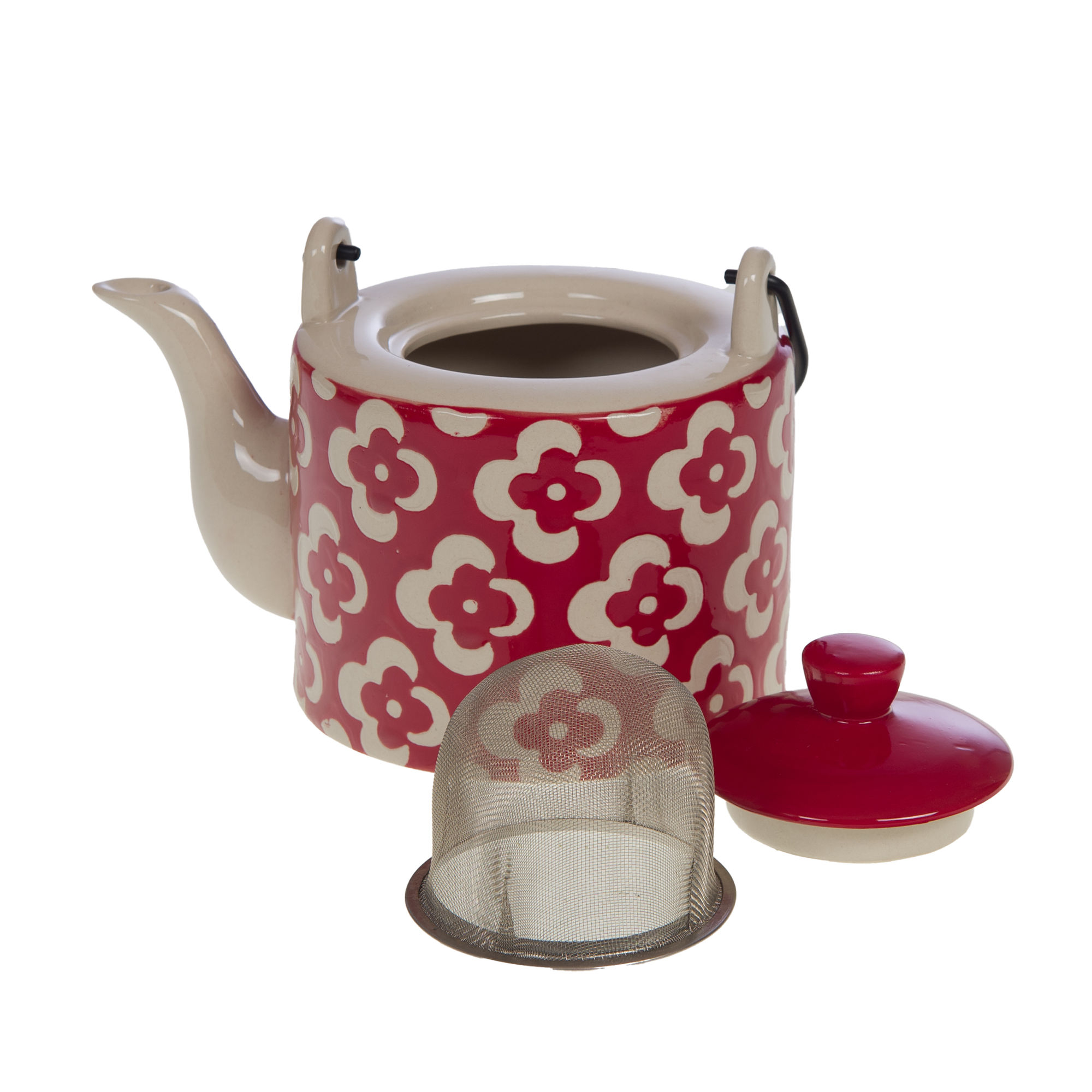 Apportez une touche rétro et chaleureuse à vos pauses thé avec cette théière en grès au motif floral rouge et blanc. Sa poignée noire ergonomique et son couvercle assorti rendent son utilisation agréable, tandis que son design charmant invite à la convivialité et à la douceur du moment.