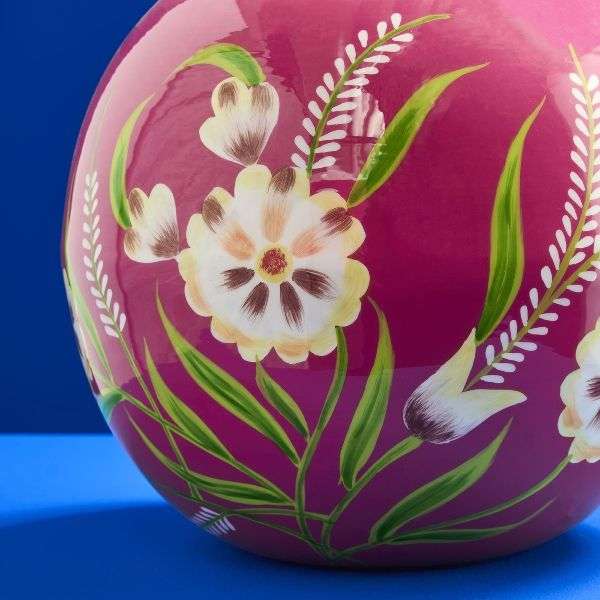 Sa forme ronde et harmonieuse, associée à sa couleur rose éclatante, fait de ce vase une pièce à la fois chic et originale. Il est idéal pour accueillir vos bouquets, fleurs séchées, ou simplement pour être posé seul comme objet déco sur une étagère, une console ou une table basse.