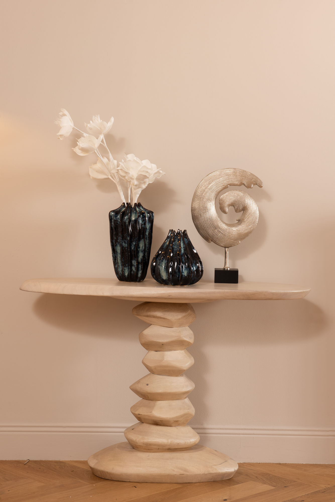 Vase en céramique grand format au design organique et texturé. Sa finition sombre et brillante apporte une touche élégante.